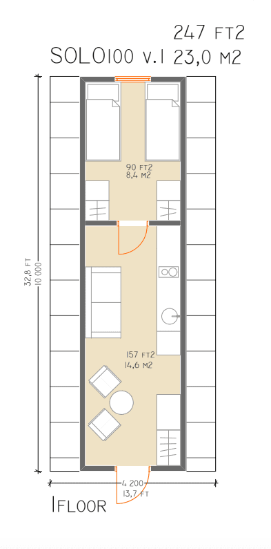 -общая площадь 23 -жилых комнат 2 -габариты дома 10х4 -Габариты дома 4,2 на 10 метров. Небольшой дом выглядит мило и уютно. Количество комнат: 2. Этот дом имеет один этаж - это позволят быстрее и проще его построить.