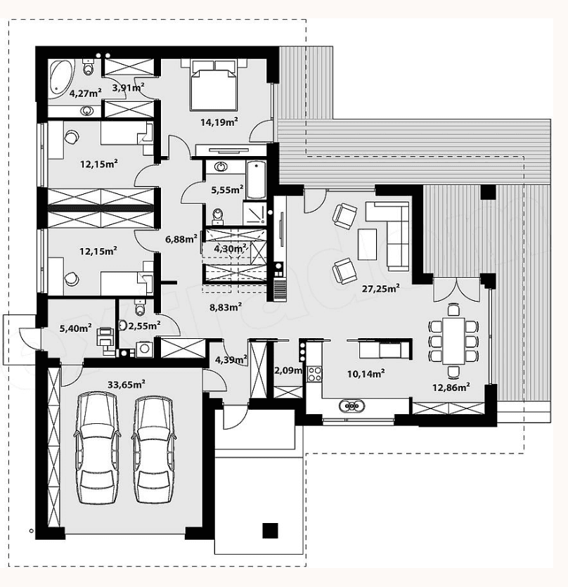 -общая площадь 170 -жилых комнат 4 -габариты дома 19х19 -Простой дом не требует больших финансовых вложений. Современный дом красивый и функциональный. Классический дом имеет презентабельный внешний вид.