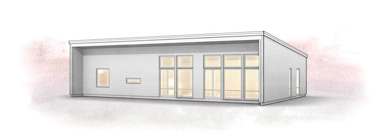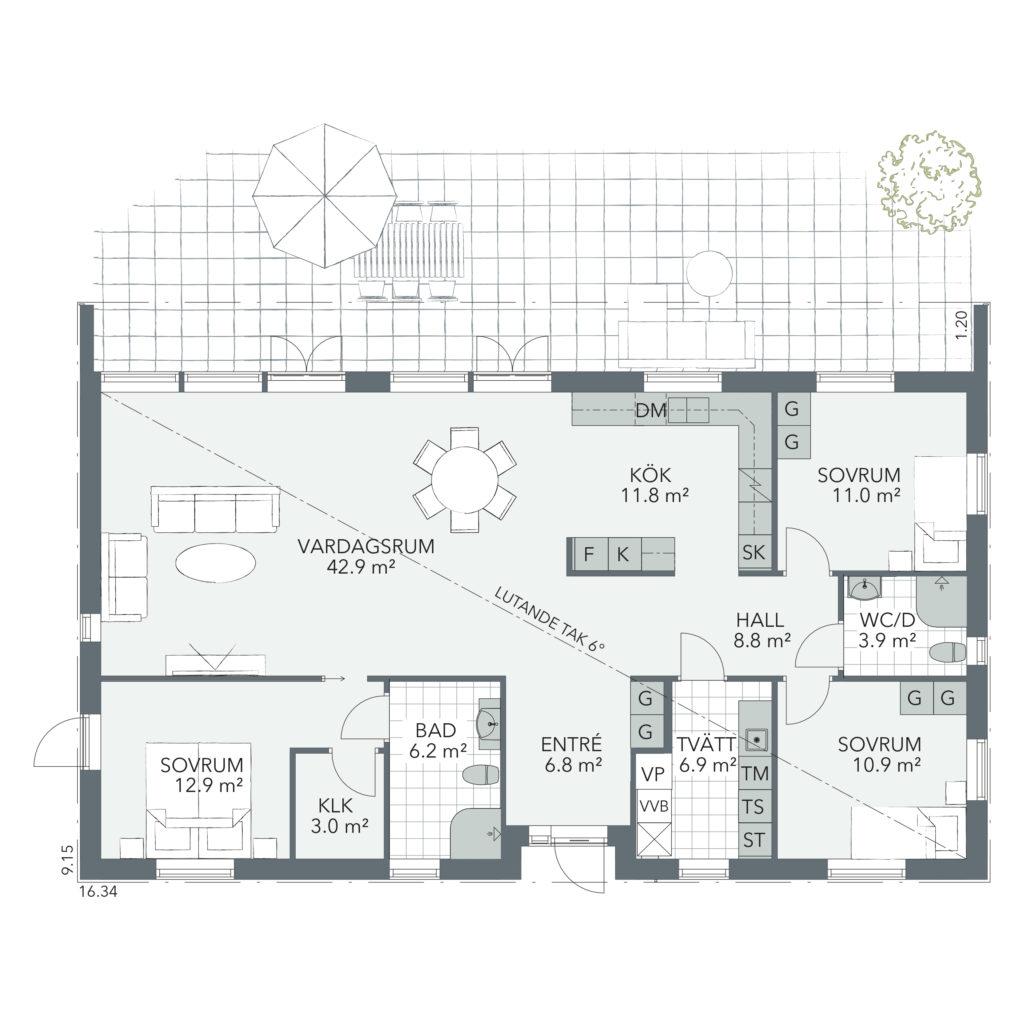 -общая площадь 125 -жилых комнат 4 -габариты дома 16х9 -Комнат 4 шт - это оптимальное количество для такой площади. Терраса придает дому эстетическую красоту. Дом имеет длину 9 и ширину 16 метров.Панорамные окна придают дому современный вид. Этот дом имеет один этаж - это позволят быстрее и проще его построить.