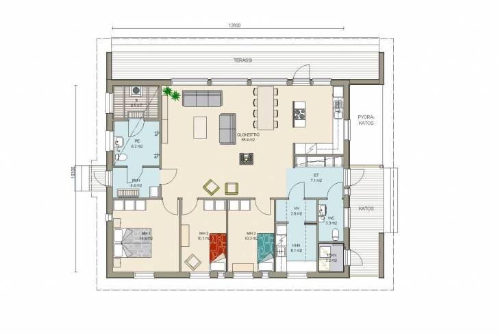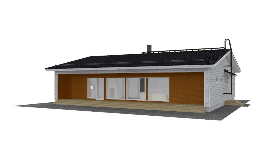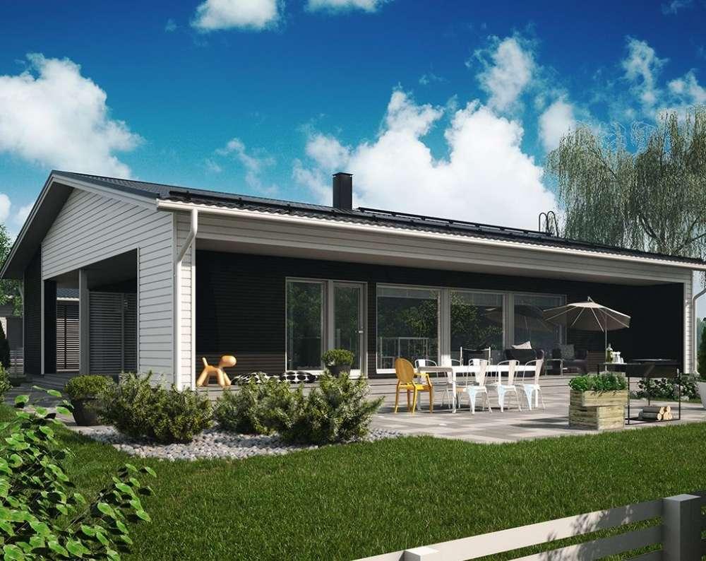 -общая площадь 120 -жилых комнат 4 -габариты дома 13х10 -Панорамные окна визуально увеличивают площадь дома. Сауна в доме обеспечивает комфорт. У дома один этаж. Встроенной в дом баней комфортно пользоваться в любое время года. Габариты дома 10 на 13 метров. Дома в скандинавском стиле всегда просторные.