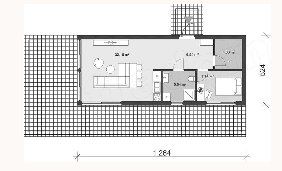 -общая площадь 55 -жилых комнат 2 -габариты дома 13х5 -Дом одноэтажный - он безопасен для детей, подходит для пенсионеров и людей с ограниченными возможностями. Терраса создает чувство единения с природой. Панорамные окна придают дому современный вид.